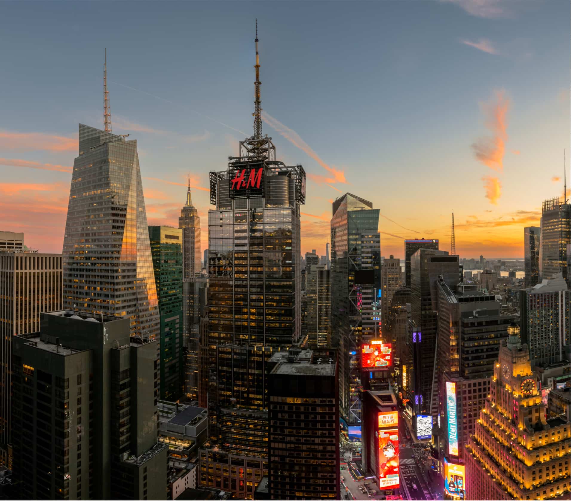 1540 Broadway’s sun-drenched roof terrace offers ample seating shaded by rich planting to provide a pleasant outdoor sanctuary, away from desks, and far above the streets below.