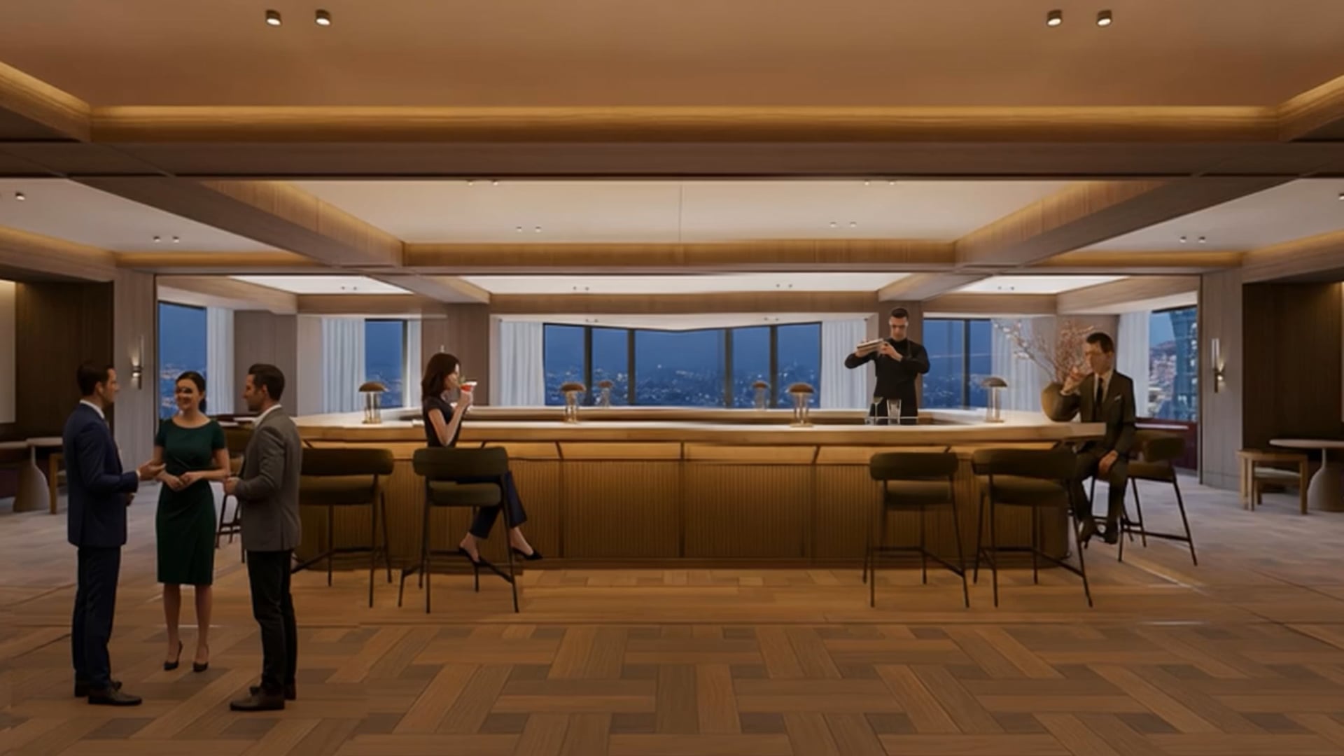 A combination of bar, lounge and table seating creates a series of moments for tenants to mix, meet and connect in elegant, stylish surroundings.
